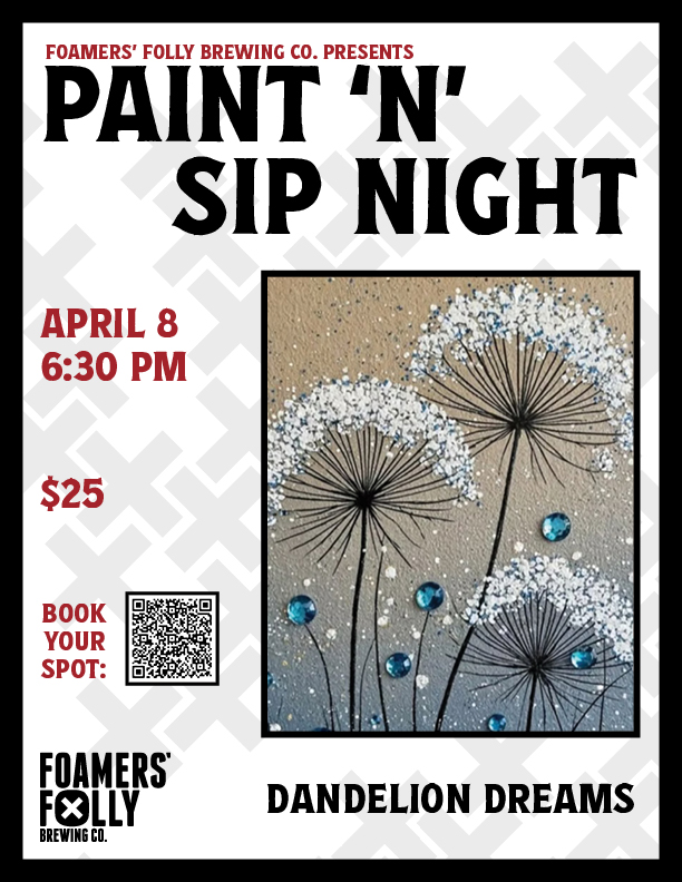 Dandelions, Drinks, and Diamonds! Join us at the brewery for a creative night out. We’re painting "Dandelion Dreams" and leveling it up with 3D jewels! All supplies included *Beginners welcome* […]